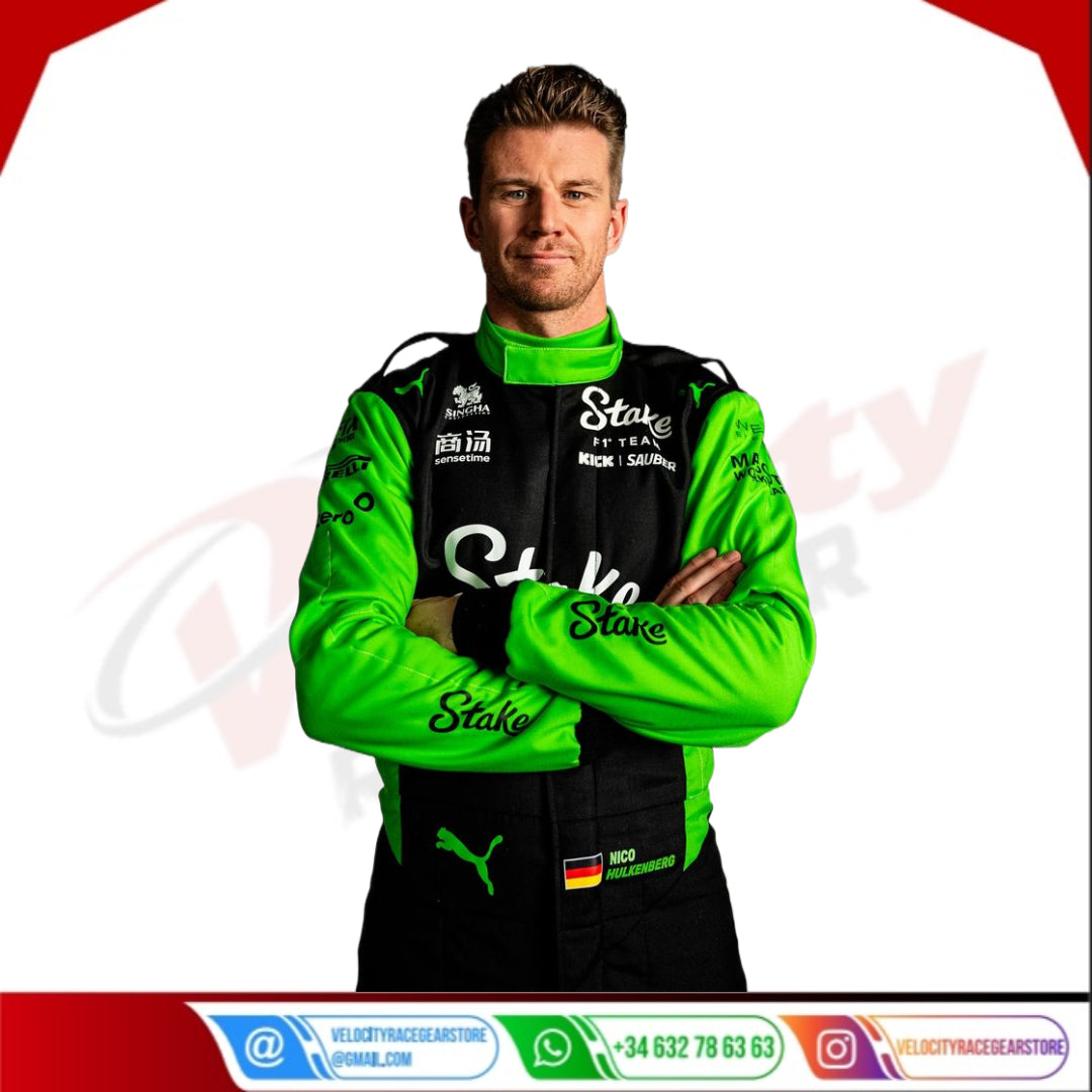 Nico Hülkenberg 2025 Stake F1 Team Replica Race Suit | FIA Level 2 Certified | Customizable Motorsport Suit for Germany, USA, UK, Australia | Premium Racing Gear for Hockenheim, Austin, Melbourne