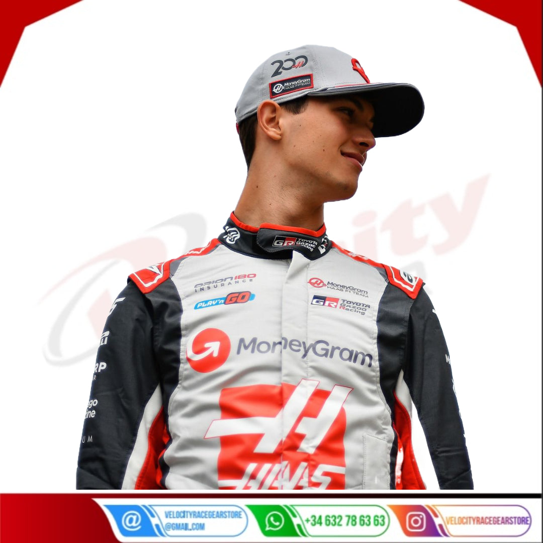 2025 Oliver Bearman MoneyGram Canadian GP Haas F1 Team F1 Replica Race Suit adheres to CIK-FIA Level 2 standards. Constructed with high-Grade, glossy nylon Cordura fabric and cotton-towel lining, the suit features all sublimation logos, heavy-duty zippers, and a sleek, race-inspired design with prominent frontracing strips. The back and sleeves are tailor-made with action back stretchable material to increase comfort while driving.
